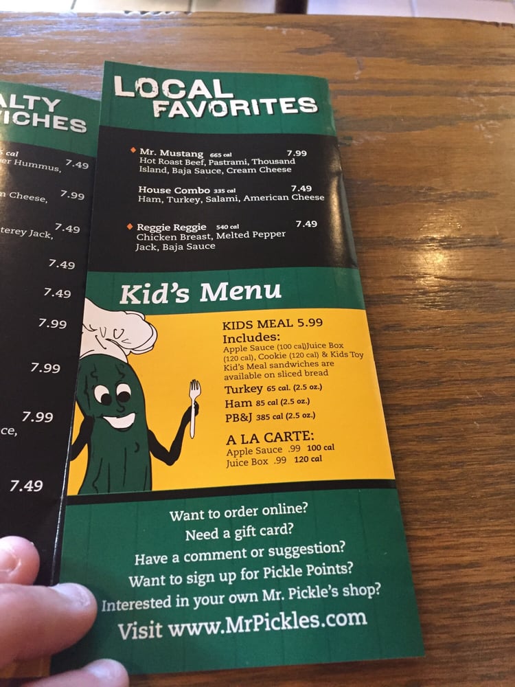 Mr. Pickle's Sandwich Shop - Oakdale, CA Menu